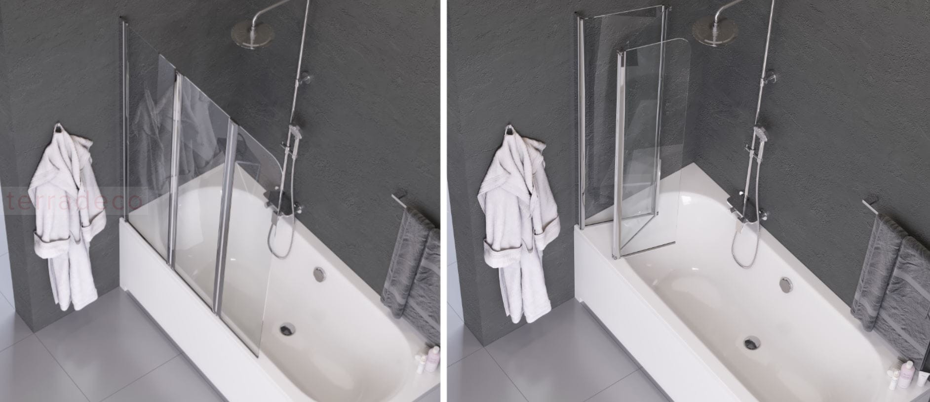 - Parawany Fliper dostępne są w wersji do montażu: lewej i prawej. W ofercie także parawany składane dwuczęściowe.
