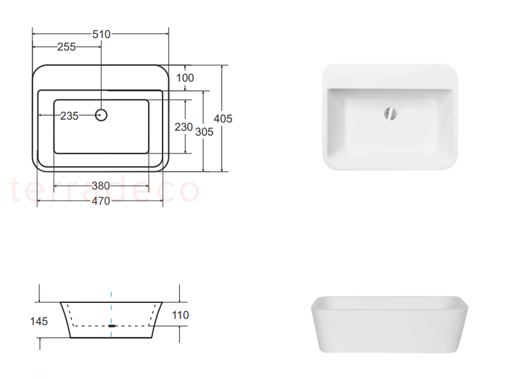 *Umywalka posiada możliwość wycięcia otworu na baterię