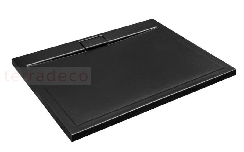 Besco Axim Ultraslim Stone Effect New 110x90 #BAX-119-PCN czarny kompozytowy prostokątny brodzik prysznicowy