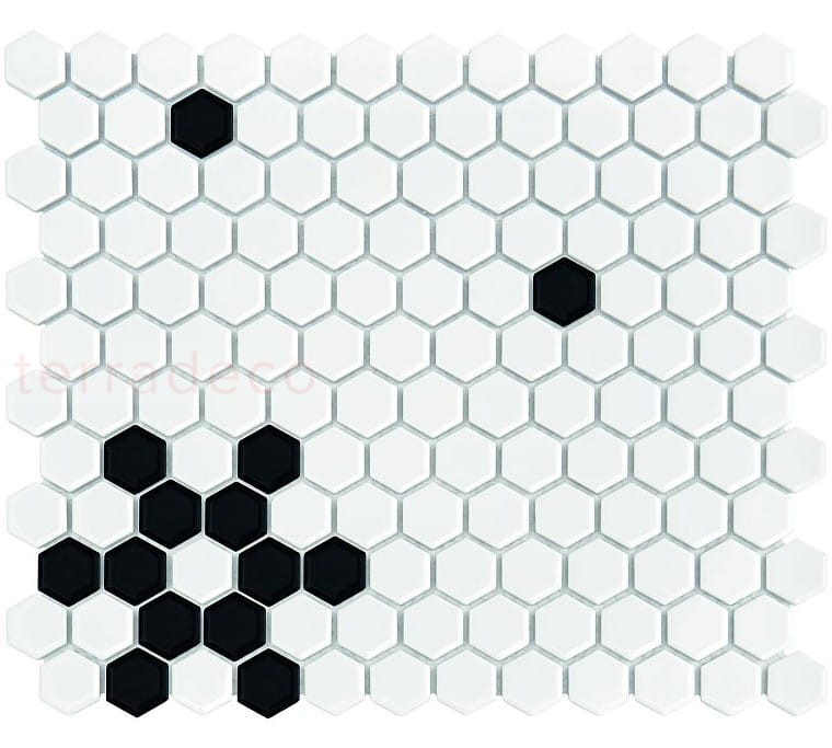 Dunin Mini Hexagon B&W Snow 26x30 mozaika heksagonalna - Czarny śnieg w ceramice nowej generacji