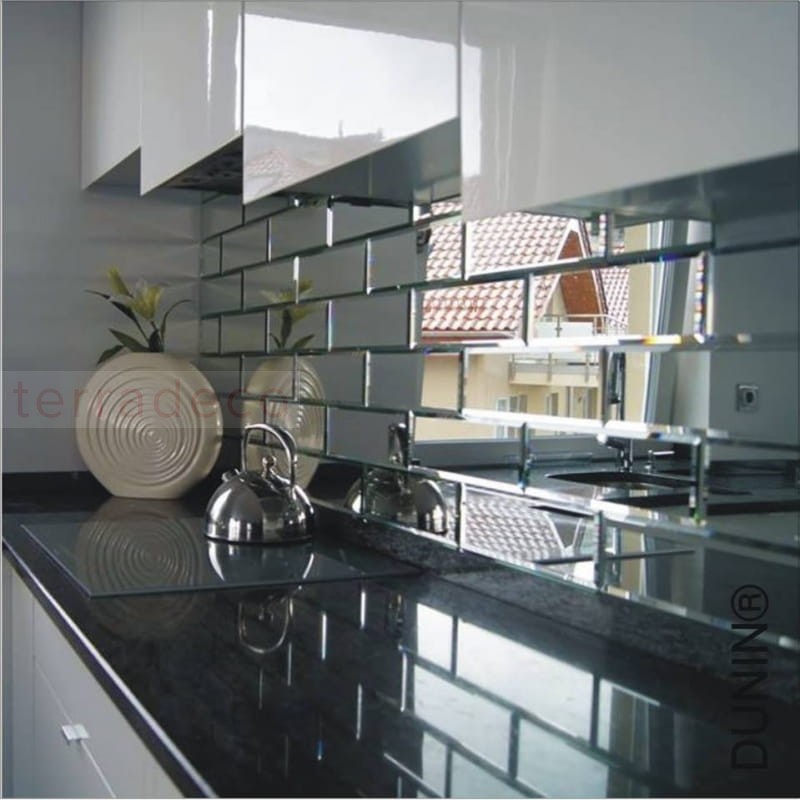 Lustrzana powierzchnia płytki Dunin jest niezwykle dekoracyjna. Jej minimalizm jest też wszechstronny, co pozwala zaadaptować ją do wielu stylów. Sprawdzi się w oszczędnych, współczesnych aranżacjach. Lustro odbija nie tylko przedmioty, ale też światło, niesamowicie rozjaśniając przestrzeń. Vitrum 301 Dunin jest doskonałą propozycją do niewielkiej kuchni i salonu. Odbijając przedmioty tworzy abstrakcyjne obrazy, które pełnią dodatkową funkcję dekoracyjną.