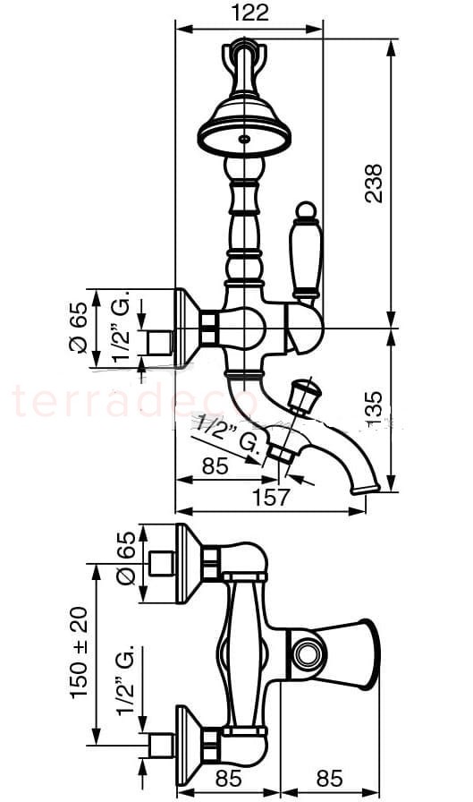 Emmevi Rubinetterie Laguna 40011CR bateria wannowa ścienna jednouchwytowa chrom :