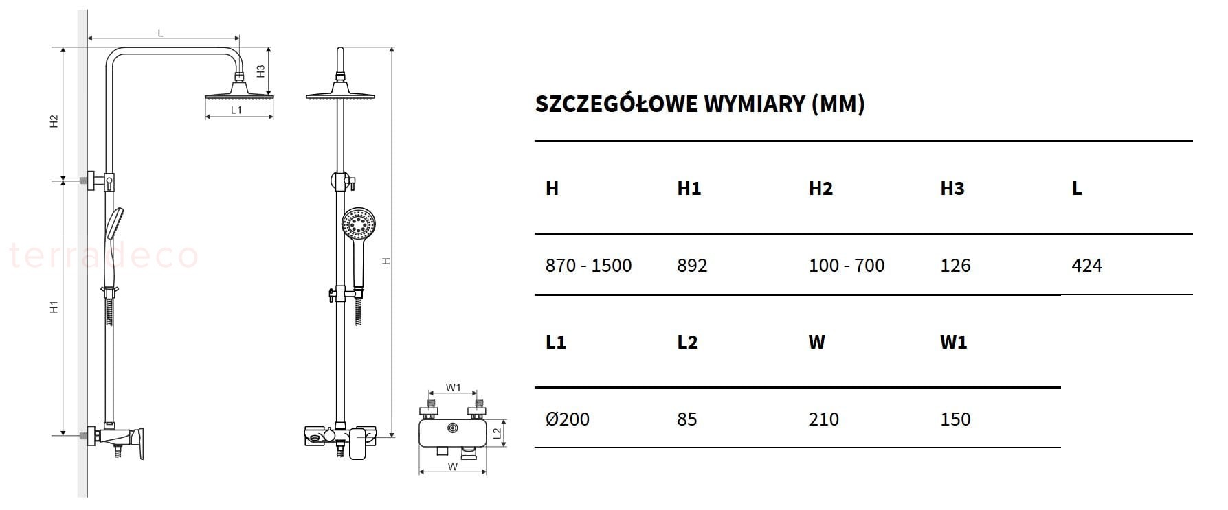 | Słuchawka prysznicowa | Tak |