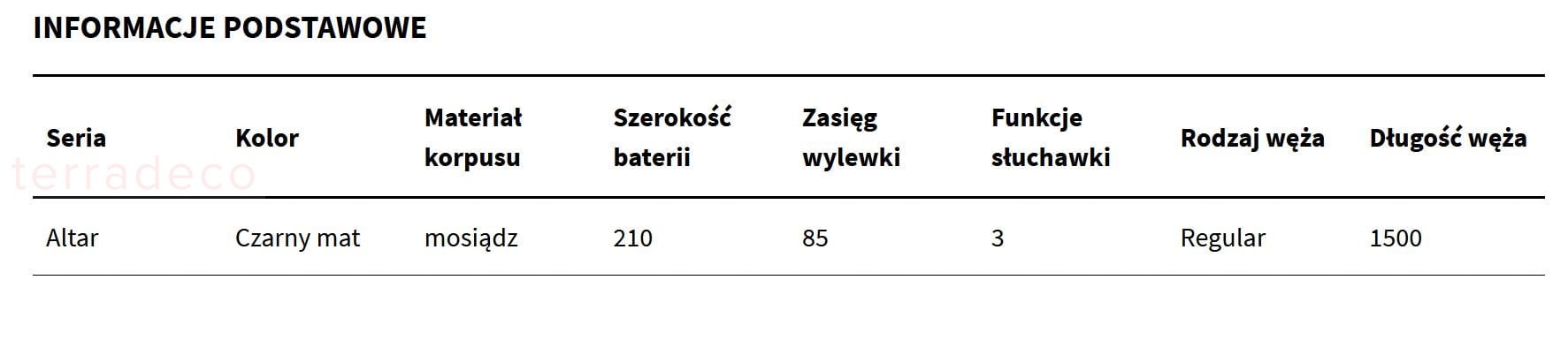 | Wąż prysznicowy | Tak |