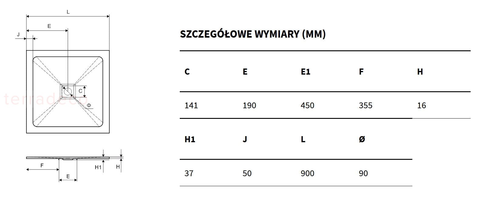 - Rozmiar D/S/W mm: 900/900/16