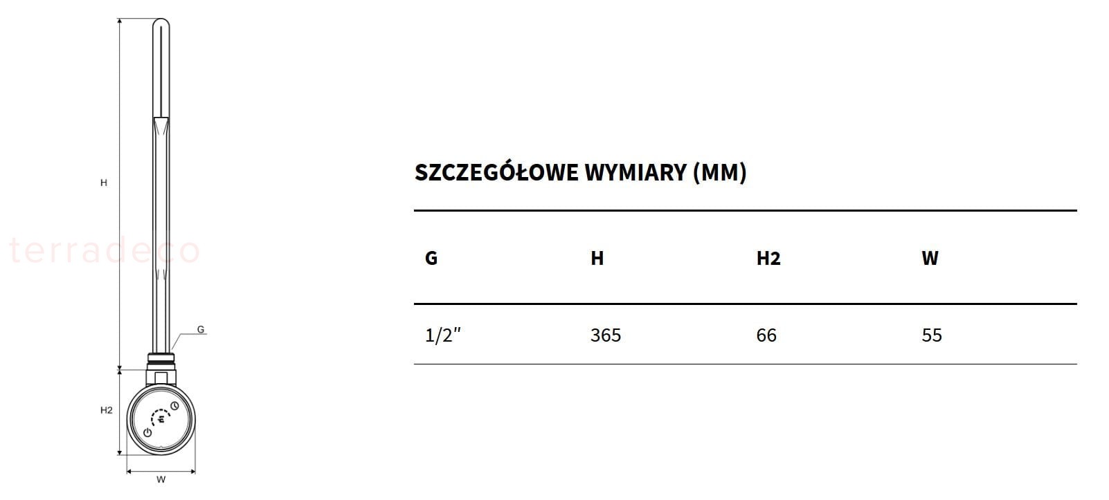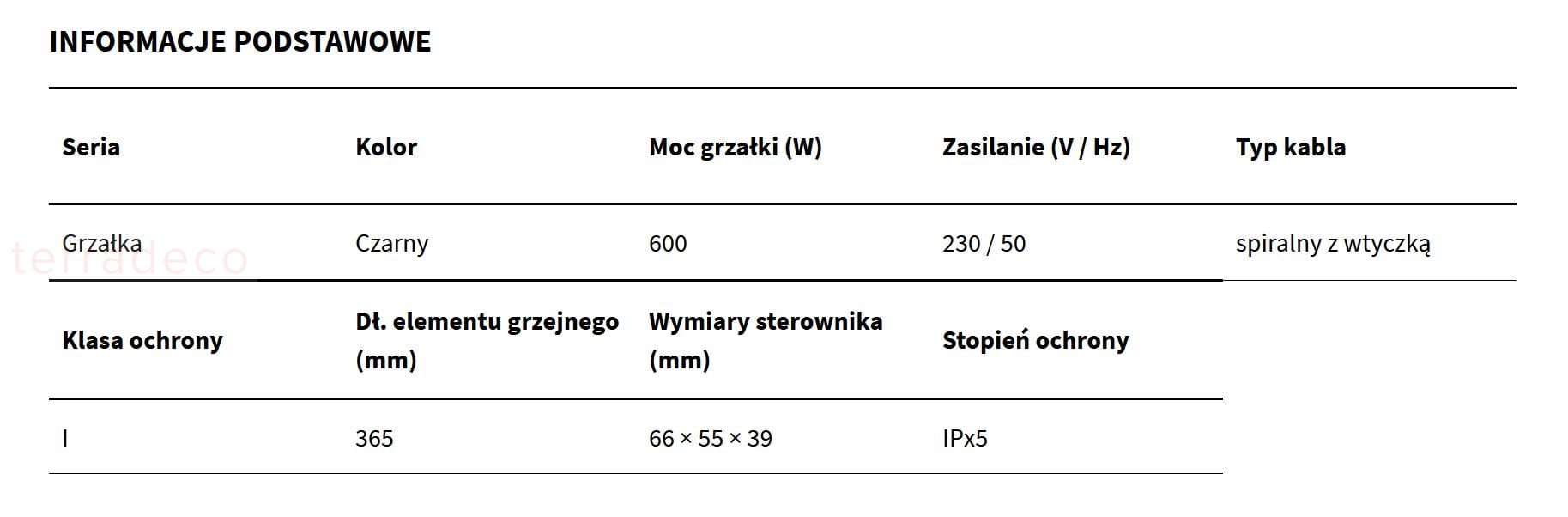 - Dł. elementu grzejnego (mm): 365