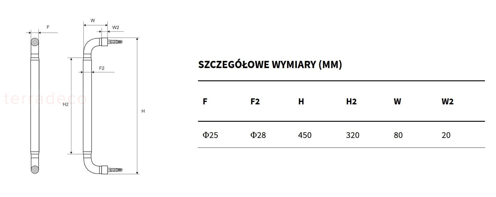 Excellent Hendi DOEX.1845CR uchwyt łazienkowy prosty 45 cm chrom - podstawowe informacje :