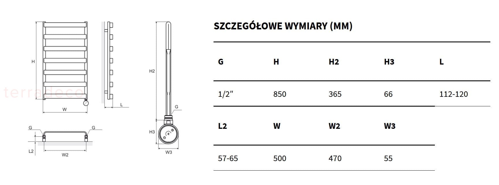 Excellent Meteor GREX.ME85.SET.WH grzejnik łazienkowy elektryczny 85 cm biały - podstawowe informacje :