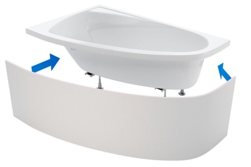 - Obudowa dopasowana do wannien narożnych, do zabudowy długiego frontu (maksymalny wymiar boku długiego to 2500mm). W komplecie znajduje się zestaw łączników.