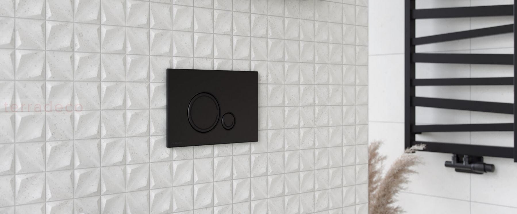 - Przycisk został zaprojektowany tak, by był jak najbardziej minimalistyczny, dlatego cała obudowa wystaje tylko 6 mm ponad płytkę. Model dostępny jest w trzech kolorach do wyboru: chrom, biały połysk lub czarny mat.