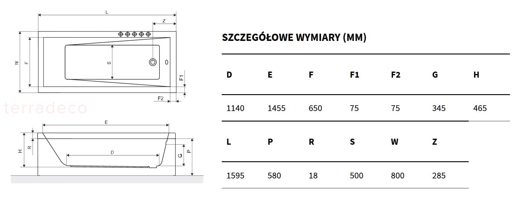 - Rozmiar D/S/W mm: 1595/800/465