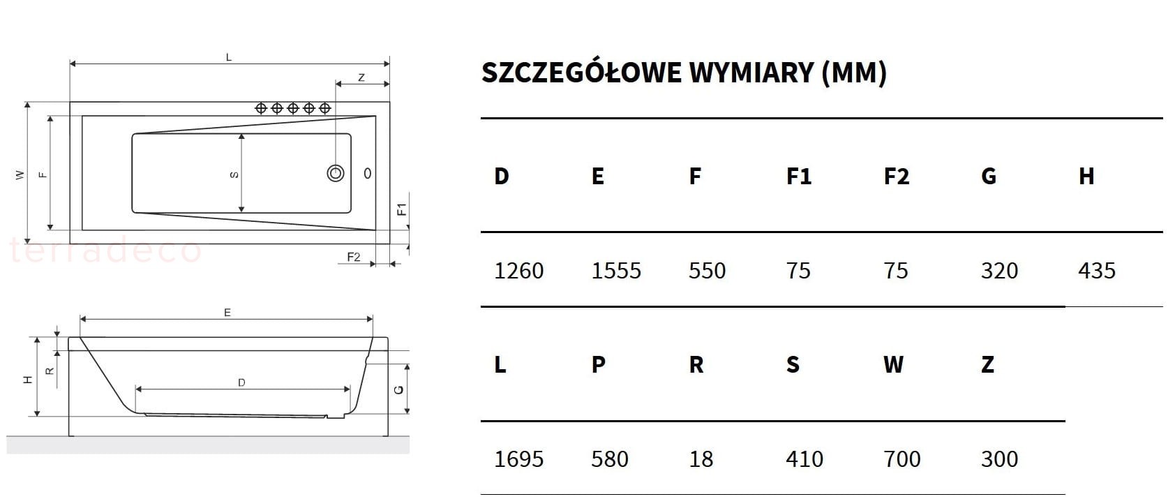 - Rozmiar D/S/W mm: 1695/700/435