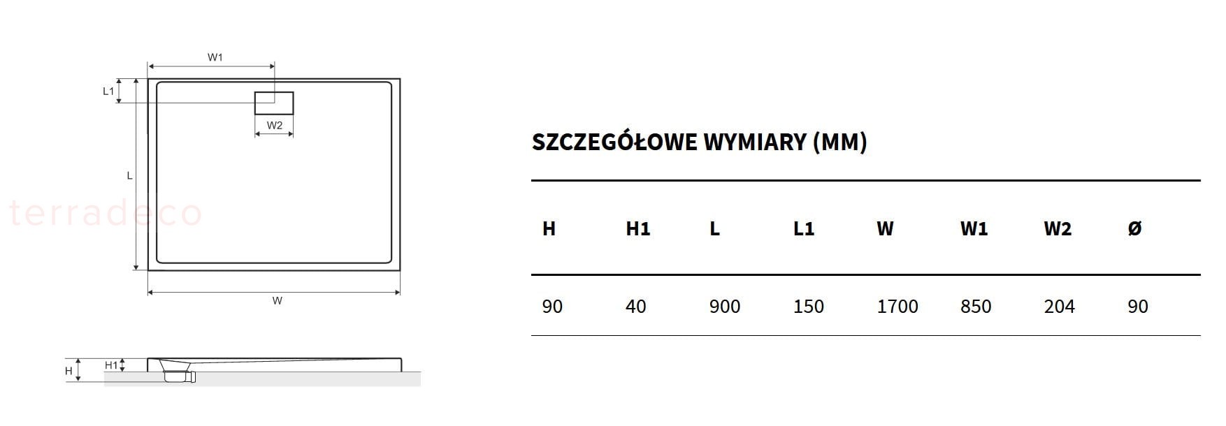 - Rozmiar D/S/W mm: 1700/900/40