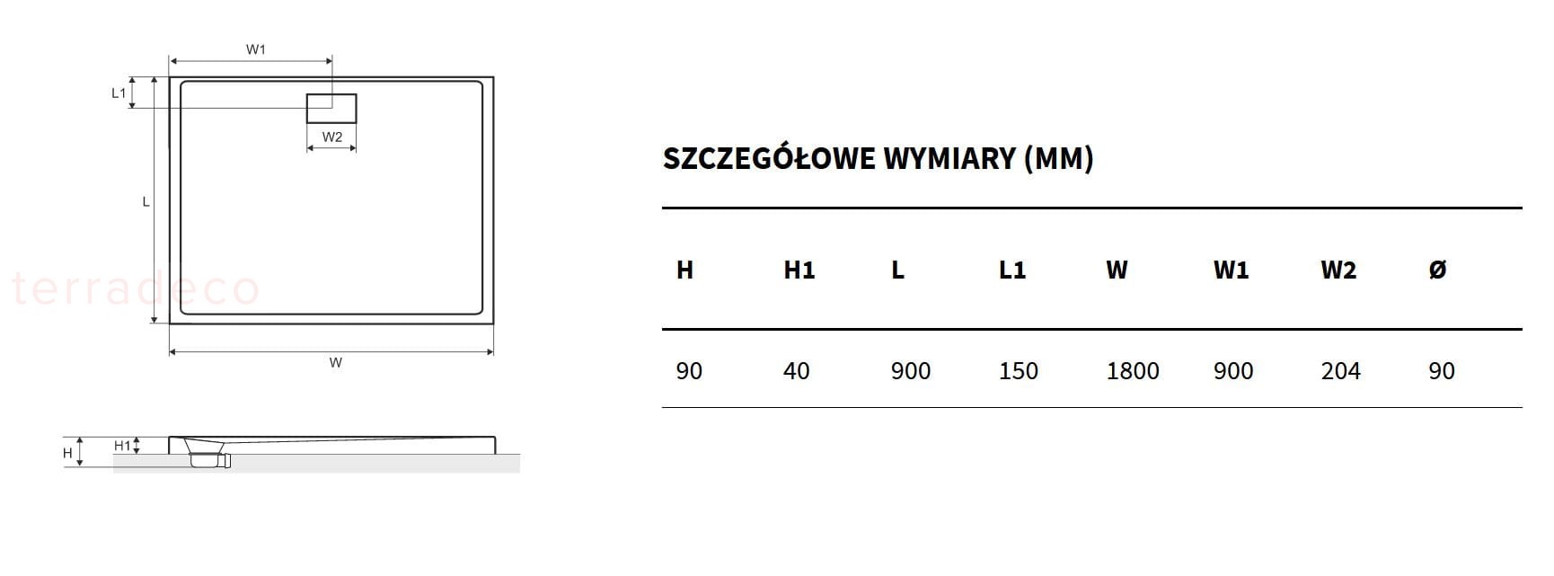 - Rozmiar D/S/W mm: 1800/900/40