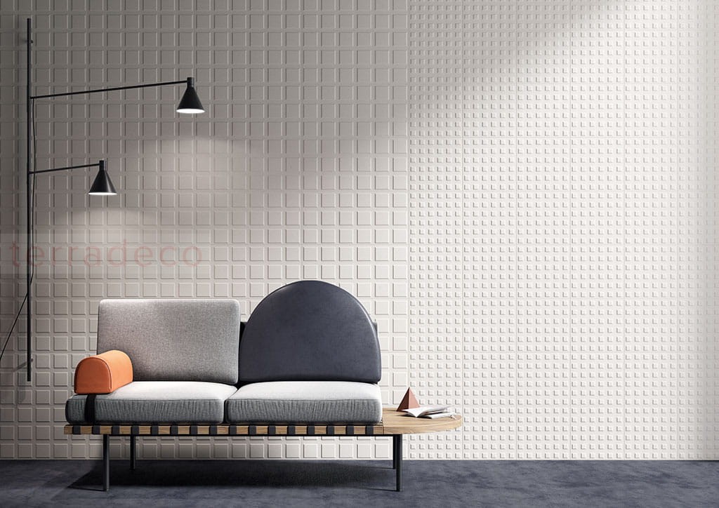 Klasyczna biel wzbogacona subtelnie fakturą 3D nadaje rytm całej przestrzeni. Kwadratową płytkę dekoracyjną można zastosować np. jako oryginalne tło dla mebli modułowych retro. W roli spokojnej, choć na pewno nie nudnej bazy zaowocuje większą różnorodnością wnętrza. Matowa powierzchnia pochłania promienie – zarówno słoneczne, jak i pochodzące ze sztucznych źródeł światła – i nadaje pomieszczeniu wytworności. Z kolei włoskie pochodzenie kafelków jest gwarancją wysokiej jakości elementów. Biel doskonale pasuje do stylu skandynawskiego oraz glamour.