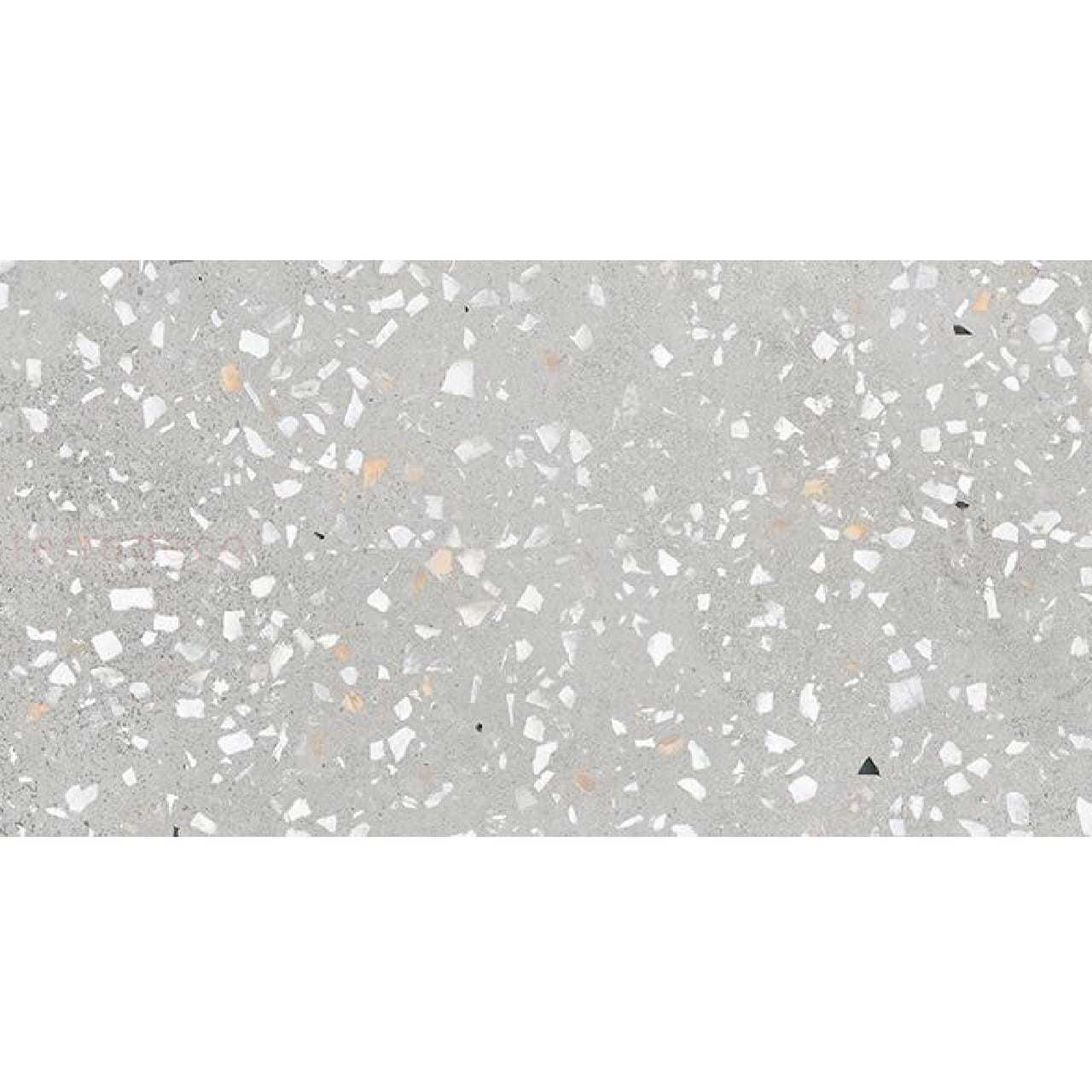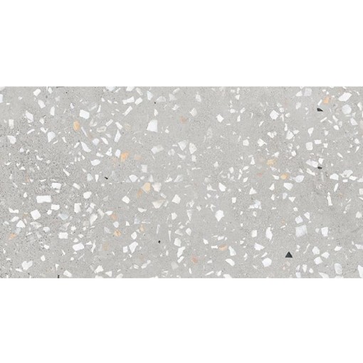 Srebrzystoszare tło jest neutralne i nieprzytłaczające. Dzięki temu pasuje zarówno do dużych, jak i niewielkich wnętrz. Zanurzone drobinki są wręcz mikroskopijne, a niewielka ilość czarnych fragmentów nieznacznie dodaje kaflom wyrazistości. Ta współczesna ceramika zachowuje wszystkie właściwości klasycznego terrazzo. Płytki są wytrzymałe, odporne na ścieranie i trudne warunki atmosferyczne. Dzięki temu świetnie sprawdzają się we wnętrzach oraz na tarasie i patio. Długo zachowują swój estetyczny wygląd nawet przy ekspozycji na intensywne słońce. Rektyfikowane krawędzie umożliwiają ułożenie niemal jednorodnej powierzchni. Rozmiary 37,5x75 są idealne do dużych i małych pomieszczeń, na podłogi i na ściany. To zwiększa uniwersalność tej hiszpańskiej propozycji.