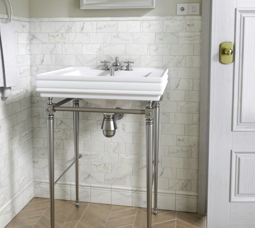 Innym sposobem jest nadanie im takiego samego wzoru, ale w pionie — prostopadle do podłogi. Kafle tworzą wówczas swego rodzaju „kaskadę”, która podwyższa wnętrze. Ten patent warto wykorzystać na ścianie pod prysznicem lub na obudowie geberitu. Dla niego idealne będą też wszelkie wnęki.