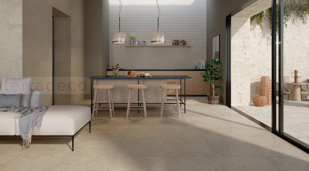 Płytki ceramiczne Marazzi Caracter Arena 100x100 MDCS to doskonała propozycja dla osób poszukujących równowagi między urokliwym wyglądem naturalnego kamienia a ciepłym, beżowym odcieniem. Ten wielkoformatowy, włoski gres bezbłędnie wpisuje się w aktualne trendy, tworząc solidną bazę dla stylu minimalistycznego, boho czy nowoczesnej elegancji. Imponujący format 100x100 cm oraz precyzyjnie rektyfikowane krawędzie pozwalają na użycie niezwykle wąskiej fugi. Zapewnia to wizualny efekt spójnej, jednolitej tafli, która optycznie powiększa przestrzeń. To rewelacyjny materiał wykończeniowy do reprezentacyjnego salonu, kuchni, a także łazienki.
