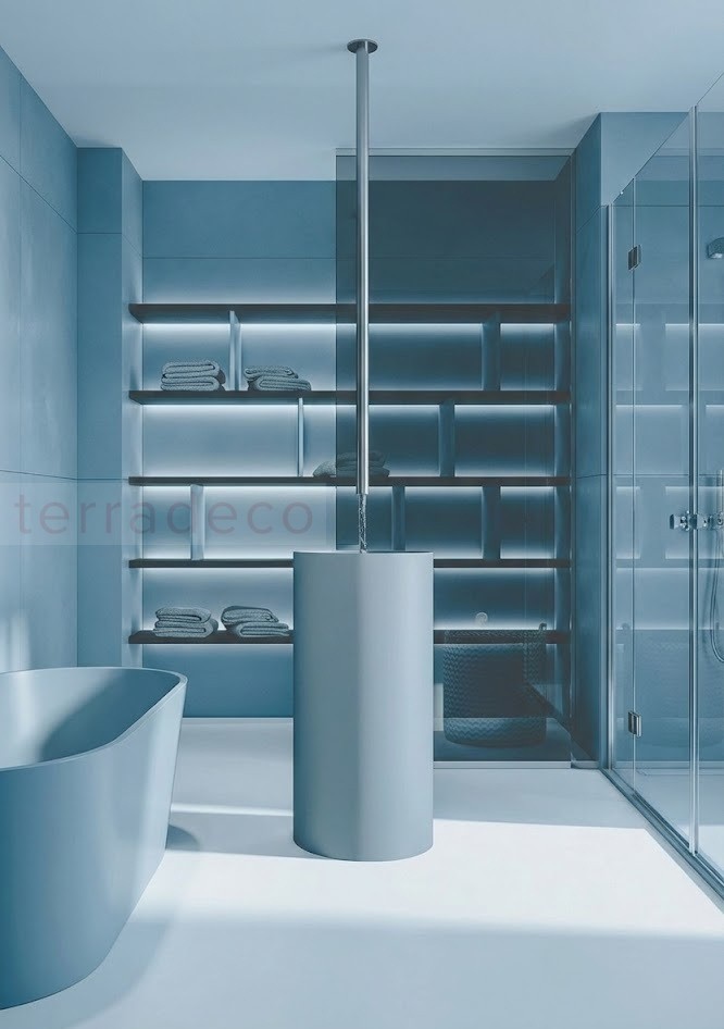 Mobilcrab Fount2 okrągła umywalka ceramiczna wolnostojąca w niebieskim matowym odcieniu podstawowe informacje o umywalce: