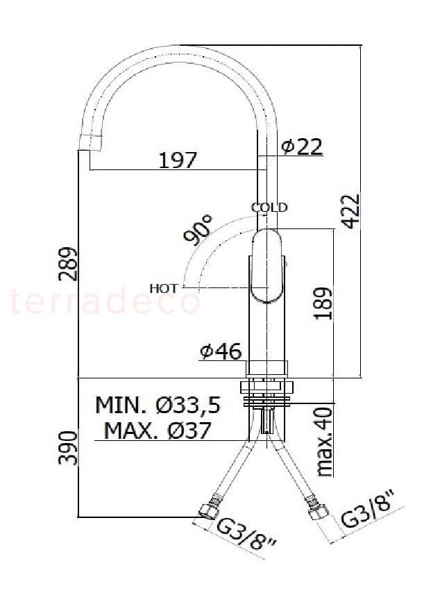 - zasięg wylewki: 20 cm