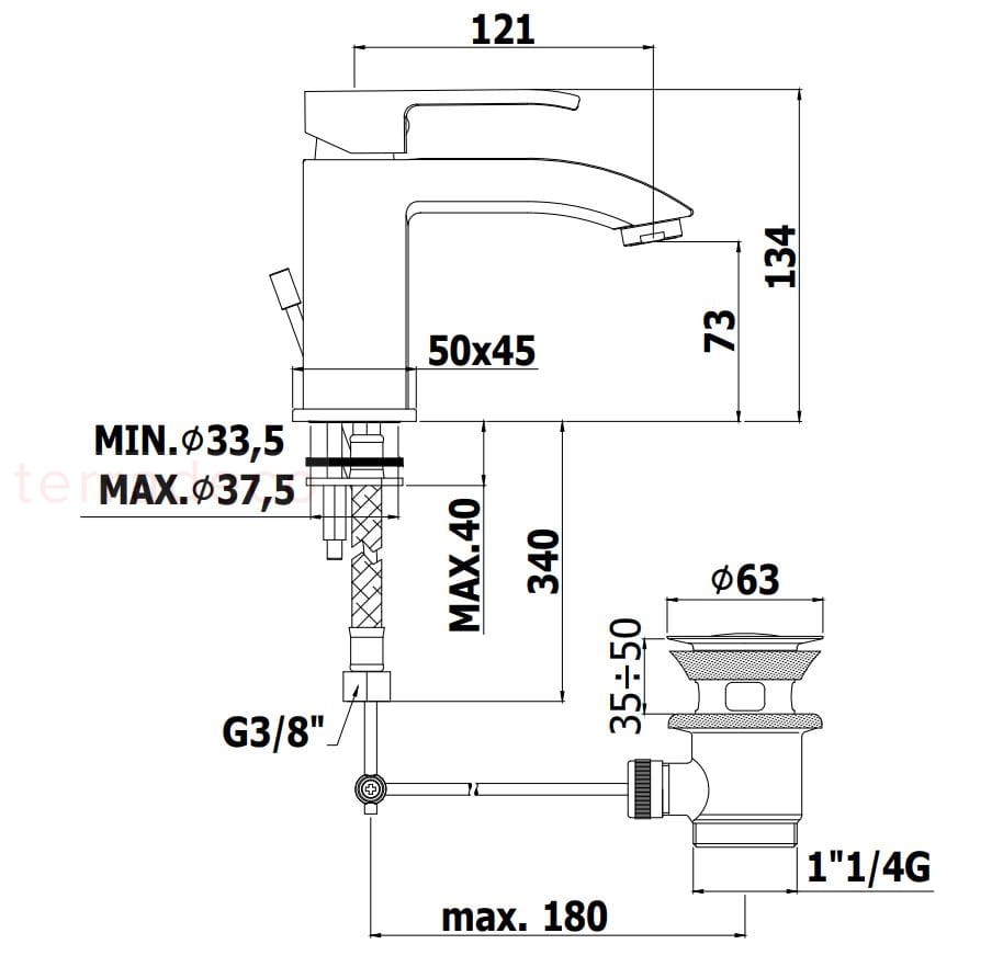 - zasięg wylewki: 121 mm
