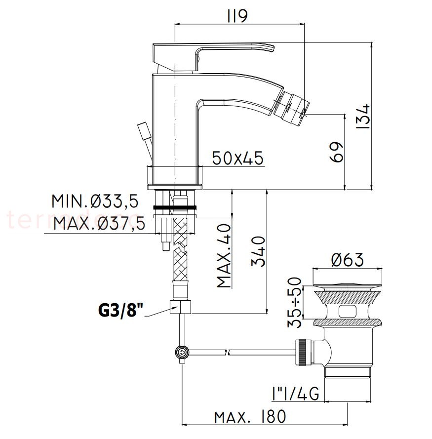 - zasięg wylewki: 119 mm