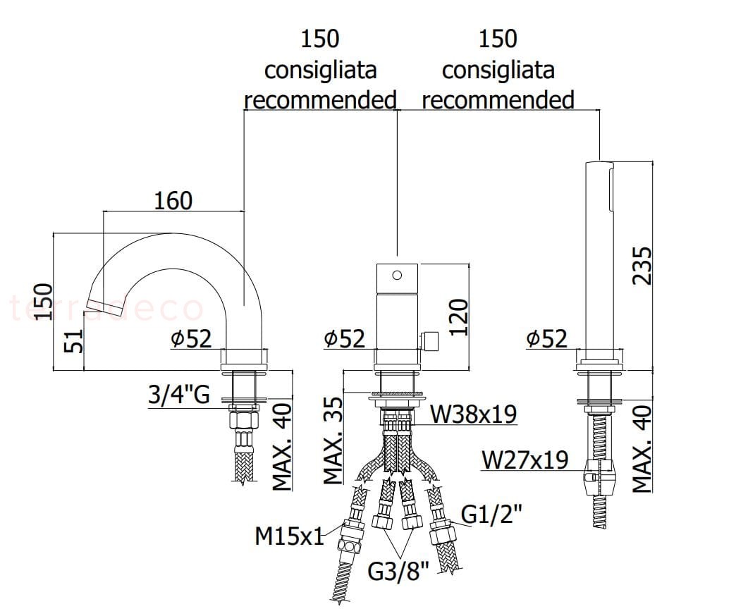 - wysokość wylewki [mm]: 150