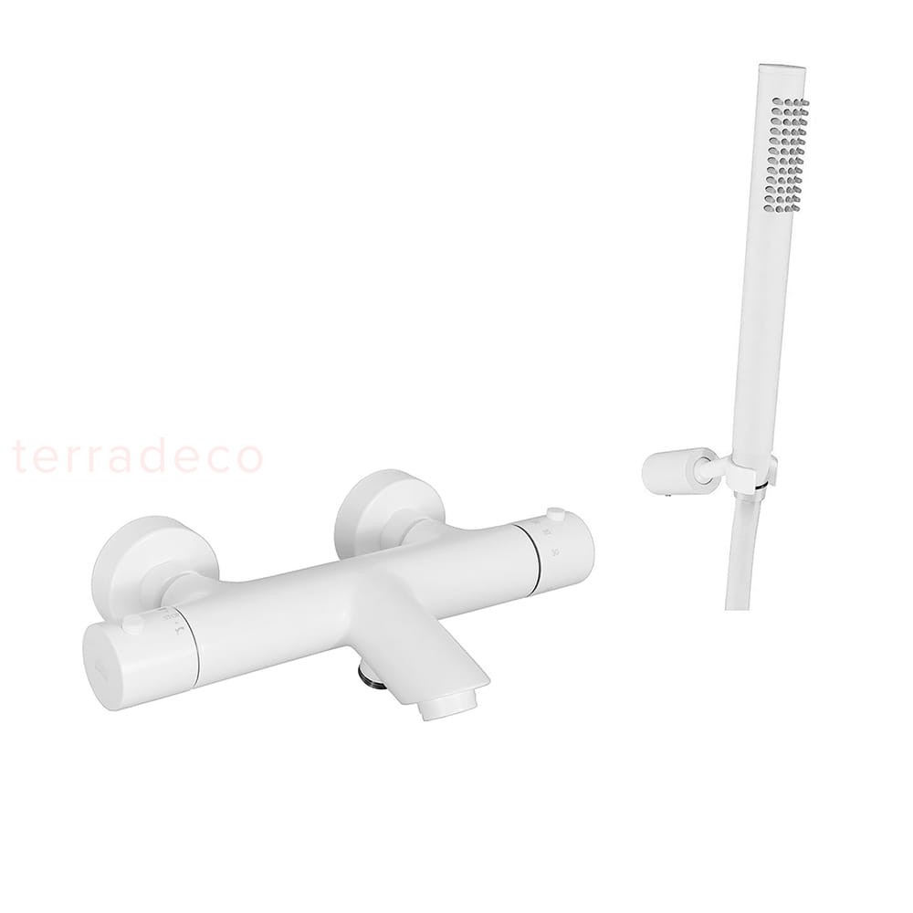 Paffoni Light LIQ023BO bateria wannowa termostatyczna ścienna ze słuchawką prysznicową biała: