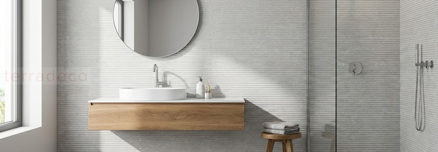 Pamesa Rlv. Cromat Perla Matt 30x90 ścienne płytki hiszpańskie z ryflowaną strukturą inspirowane matowym betonem w szarym kolorze