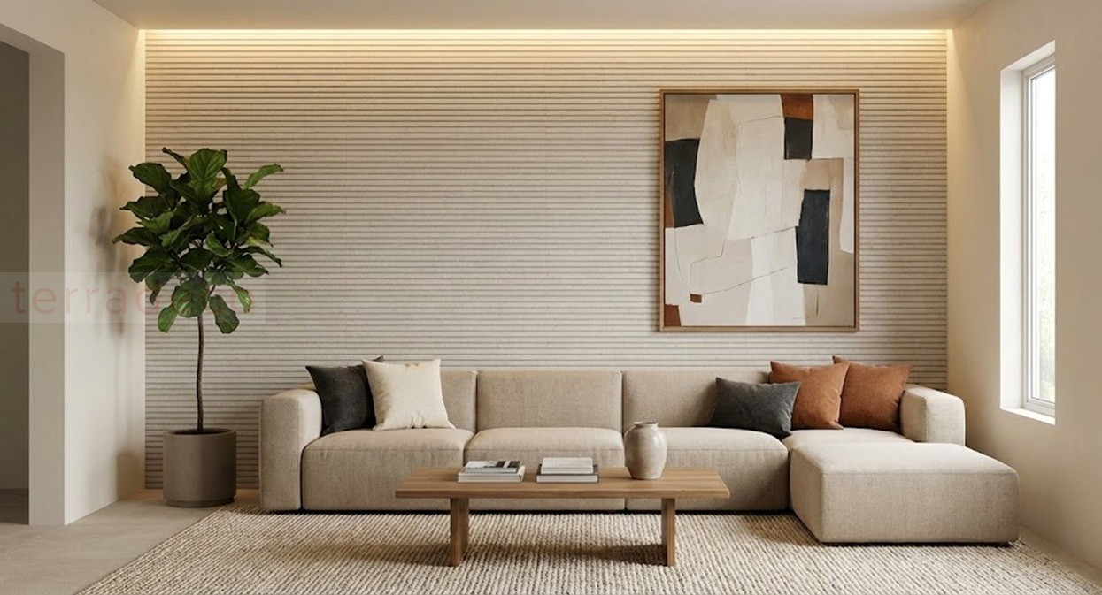 Pamesa Rlv. Lin Marfil Matt 60x120 ścienne płytki imitujące ryflowany beton w beżowym odcieniu - podstawowe informacje o płytce: