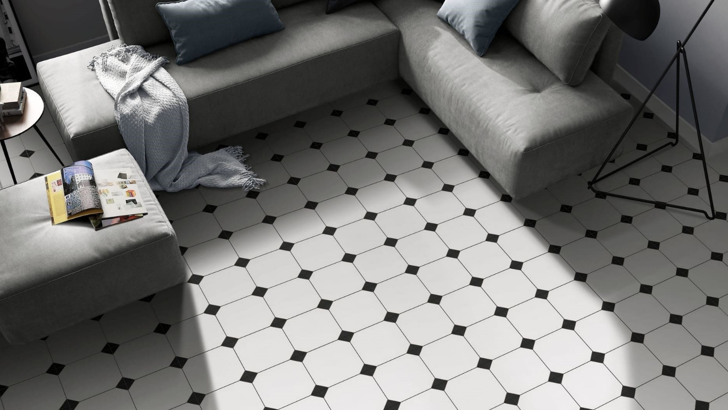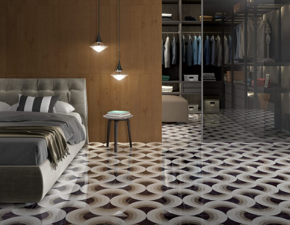 Płytki podłogowe retro z kolei najlepiej wyglądają na całej powierzchni — dotyczy to w szczególności geometrycznych kafli w stylu vintage, np. Aparici Bondi Puebla 59.2x59.2. Natomiast patchwork o orientalnych archetypach tworzy ciekawą atmosferę zarówno na całej powierzchni, jak i w formie dekoracyjnego fragmentu wyróżniającego strefy np. wypoczynkową.