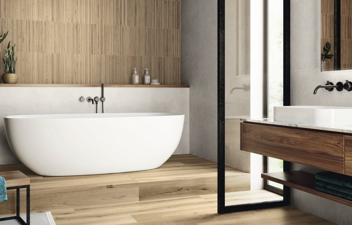 Płytki drewnopodobne w aranżacji: jak łączyć płytki drewnopodobne na ścianie i na podłodze