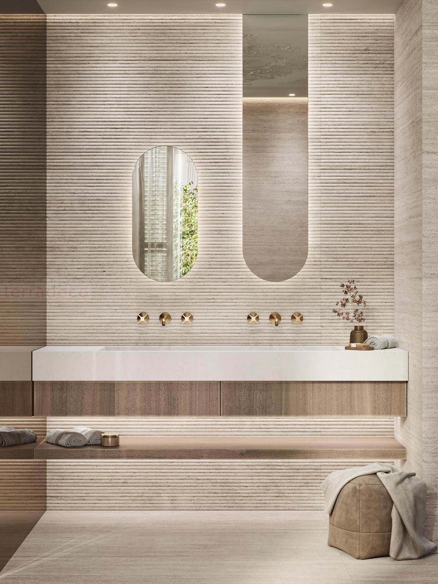 Architektoniczna głębia z płytką Porcelanosa Canal Taranto Bone 59,6x150