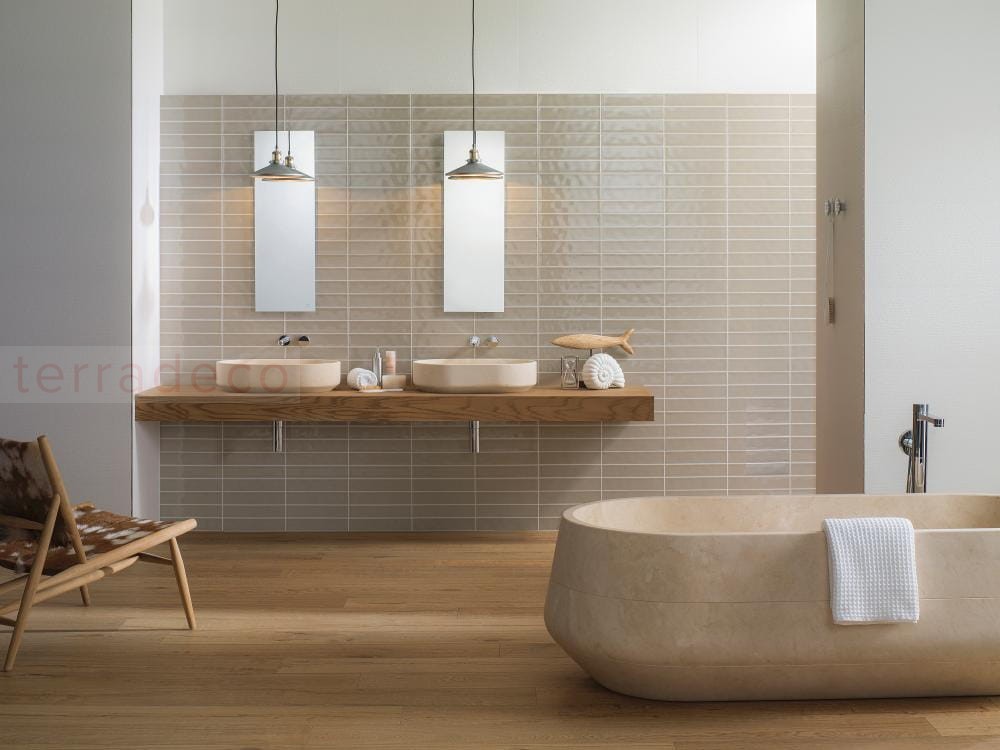 Przytulna nowoczesność z płytką Porcelanosa Malaga Beige 25x44,3