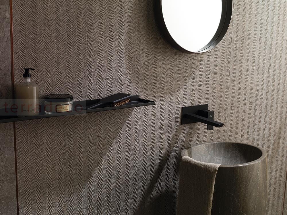 Płytka ścienna Porcelanosa Spiga Noir Topo 45x120 to propozycja dla osób poszukujących bezkompromisowej elegancji w nowoczesnym wydaniu. Jako eksperci od ceramiki premium, doceniamy ten model za unikalny wzór „Spiga” – współczesną interpretację klasycznej jodełki, która nadaje ścianom niespotykaną dynamikę i architektoniczną głębię. Odcień Topo, będący wysmakowanym połączeniem szarości i ziemistych brązów, wprowadza do wnętrza spokój i naturalną harmonię. Dzięki dużemu formatowi 45x120 cm, model ten pozwala na stworzenie luksusowej, niemal monolitycznej powierzchni, która staje się centralnym punktem aranżacji salonu kąpielowego, sypialni czy nowoczesnego holu, zachwycając subtelną grą światła i cienia.