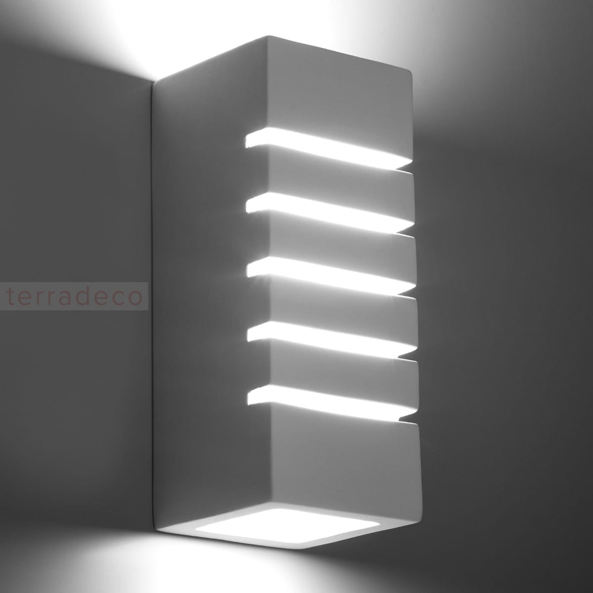 Światło w kinkiecie rozchodzi się górą i dołem, a obudowa z białej, matowej ceramiki w połączeniu z podświetlaną powierzchnią tworzy piękną wizualną kompozycję. Kinkiet świetnie zaprezentuje się w nowoczesnych wnętrzach, zachwycając swoją lekkością i zgrabnym kształtem.