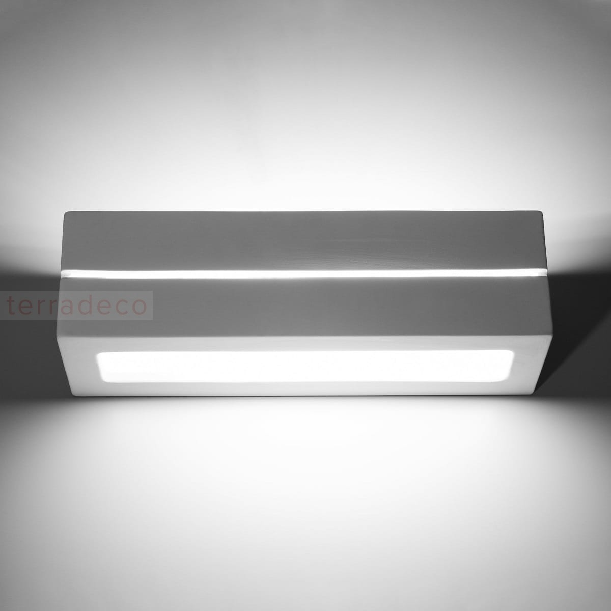 Światło w kinkiecie rozchodzi się górą i dołem, a obudowa z białej, matowej ceramiki w połączeniu z podświetlaną powierzchnią tworzy piękną wizualną kompozycję. Kinkiet świetnie zaprezentuje się w nowoczesnych wnętrzach, zachwycając swoją lekkością i zgrabnym kształtem.
