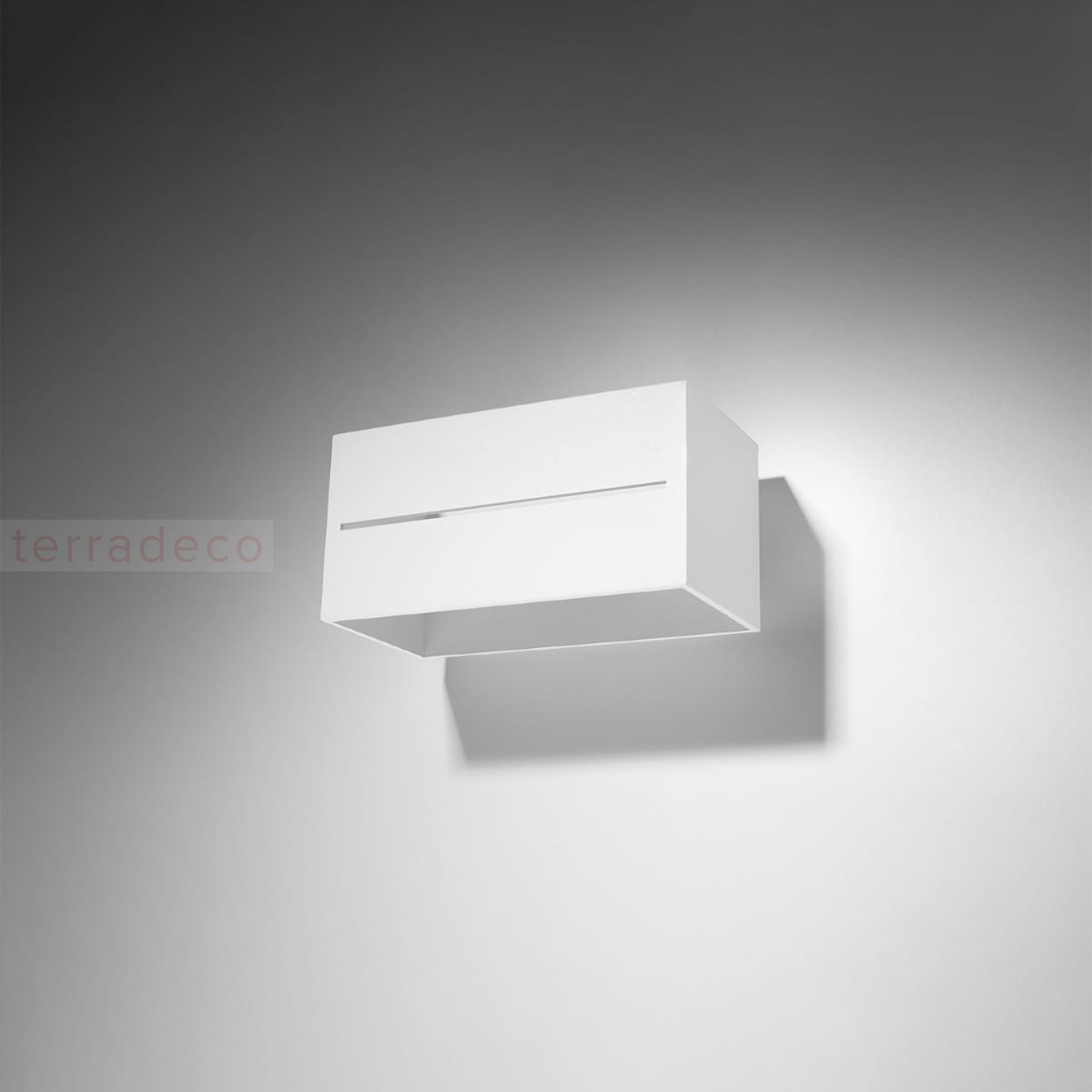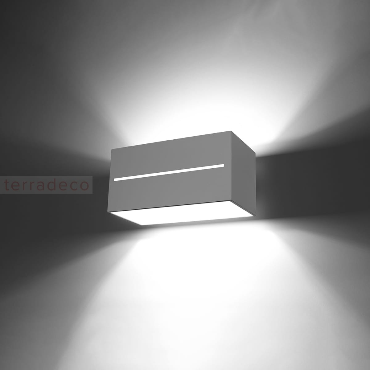 Światło rozchodzi się z kinkietu LOBO MAXI w górę i w dół oraz sączy się przez liniową perforację w bocznych ścianach klosza. Gdy go zaświecisz, zamienisz całą ścianę w efektowną dekorację.