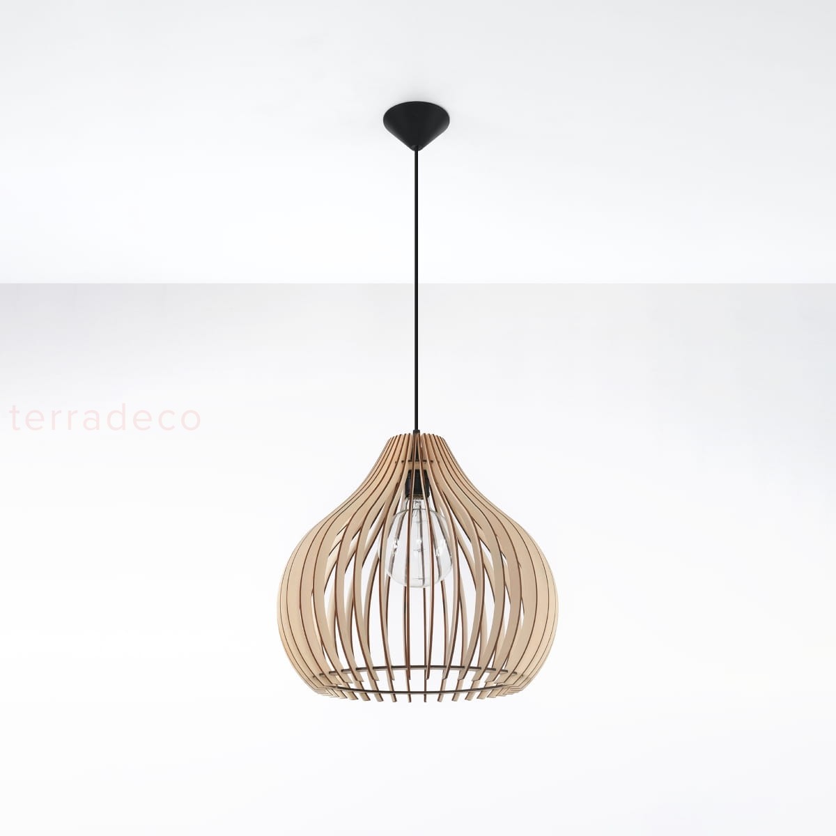Klasyczna forma lampy i uniwersalny kolor naturalnego drewna sprawia, że pasuje ona do większości wnętrz w różnych stylach. Od industrialnego, poprzez skandynawski, a skończywszy na boho.