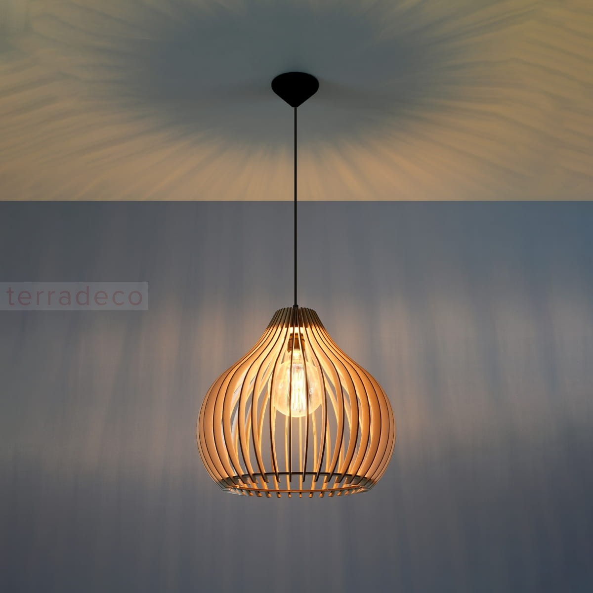 Lampa wisząca APRILLA sprawi, że każde pomieszczenie zostanie oświetlone przytulnym i ciepłym światłem. Spod drewnianego abażuru wydobywa się światło, które tworzy wyjątkowe efekty na suficie i ścianie. Daj się jej oczarować i odmień swój dom na lepsze.