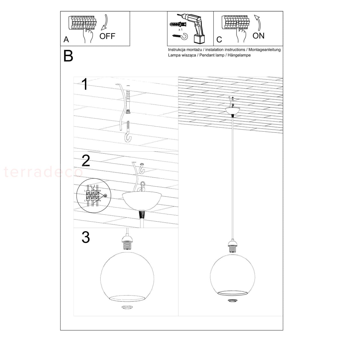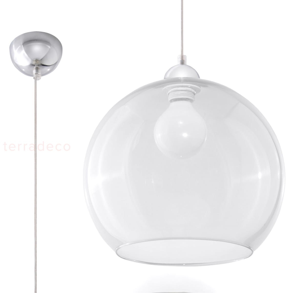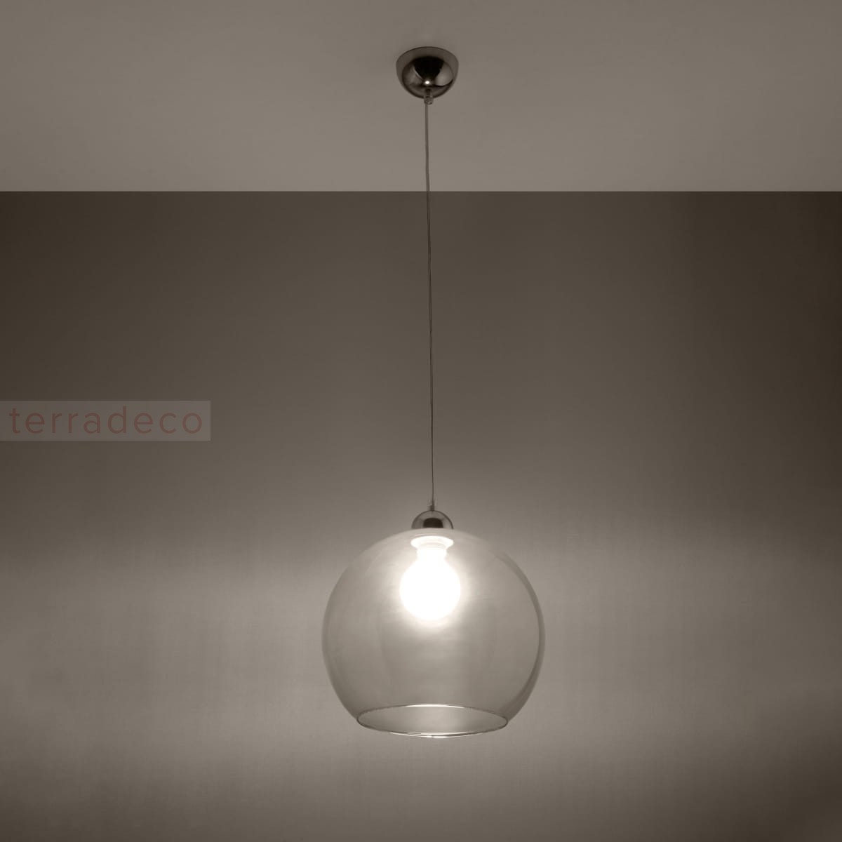 Klosz o kształcie kuli jest wykonany ze szkła, więc idealnie rozprasza światło w pomieszczeniu. W rezultacie dociera ono równomiernie we wszystkie zakątki i estetycznie się prezentuje.