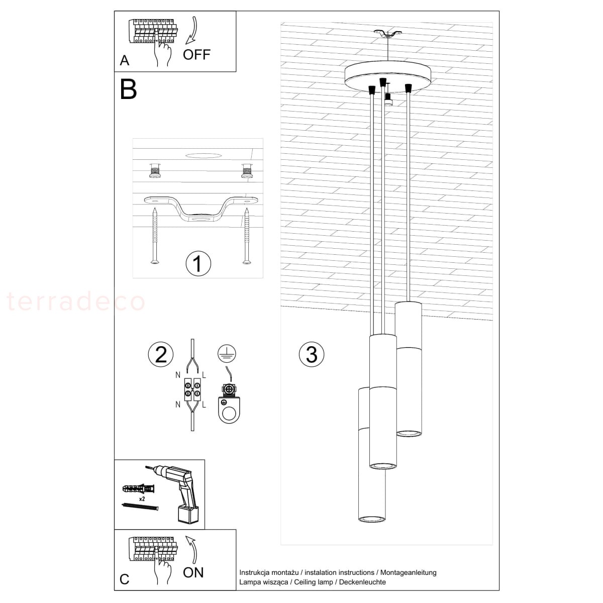 Betonowa lampa wisząca BORGIO jest dostępna aż w 3 wariantach: z jednym, dwoma lub trzema źródłami światła. Zdecyduj, ile blasku potrzebujesz w swoim wnętrzu i dobierz idealną wersję dla siebie.