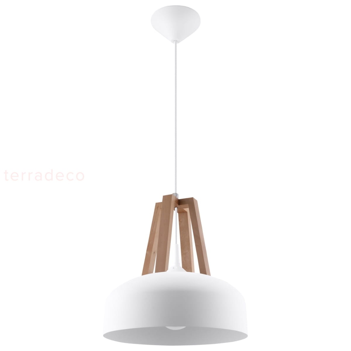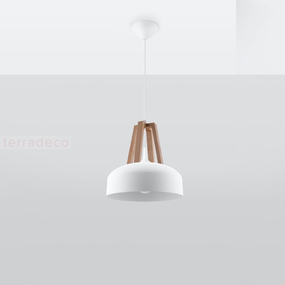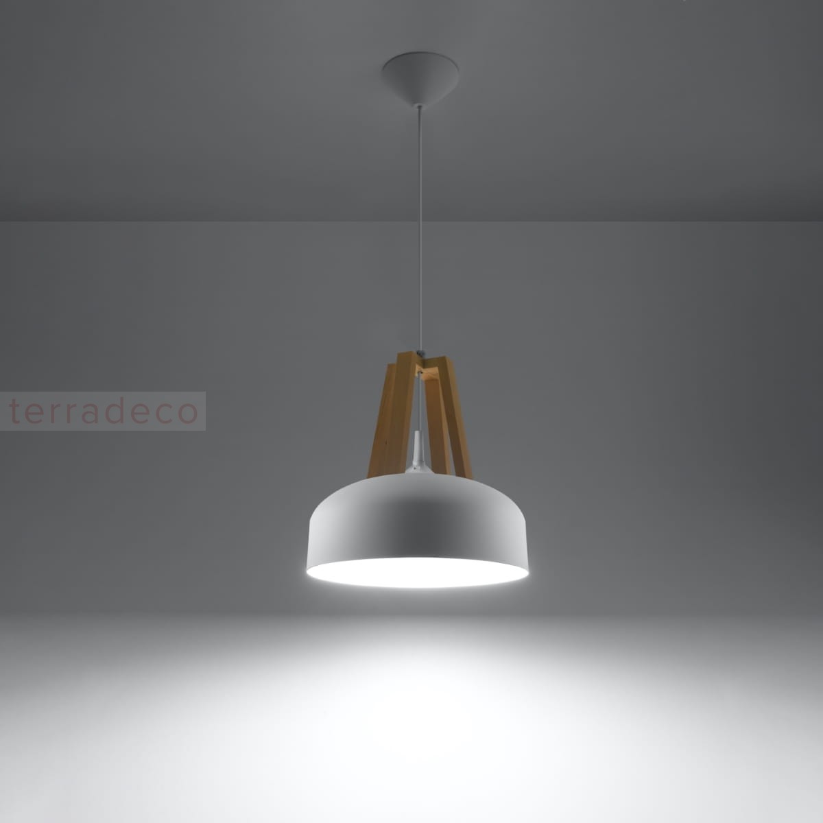 Czarny lub biały klosz wzbogacony drewnianym akcentem - design naszej nowoczesnej lampy wiszącej aż woła o miejsce w eleganckim wnętrzu. Szybko się w nim rozgości, wprowadzając niepowtarzalny klimat.