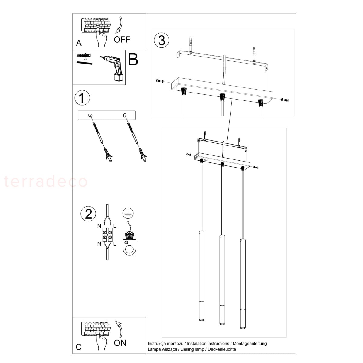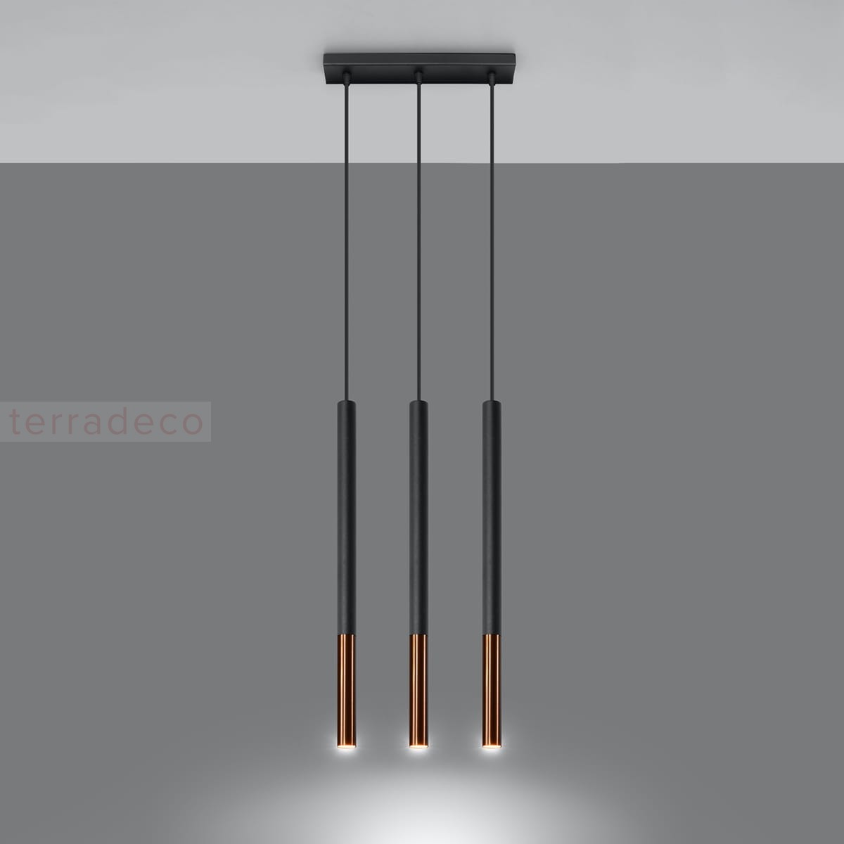 Dostosuj liczbę punktów świetlnych do swojego wnętrza. Lampę wiszącą MOZAICA dostaniesz w trzech wariantach: z jednym lub trzema kloszami ustawionymi liniowo oraz na planie trójkąta.
