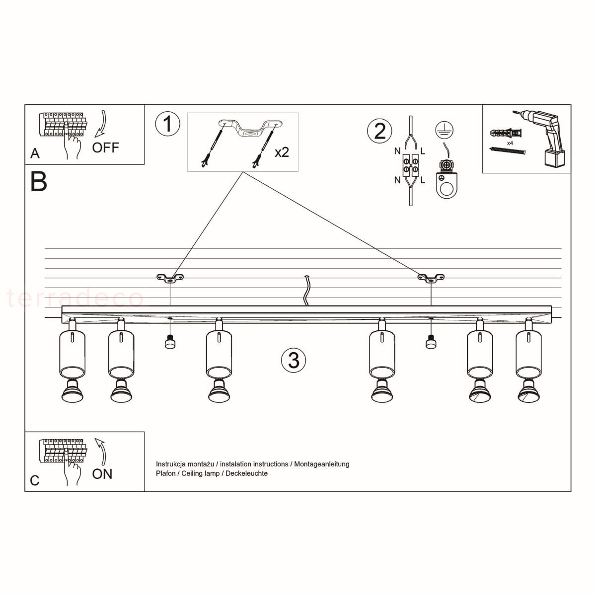 Zapomnij o uciążliwym montażu i omdlałych ramionach. Plafon sufitowy na 6 kloszy zamontujesz szybko i z łatwością, więc wystarczy chwila, by zacząć cieszyć się jego blaskiem.