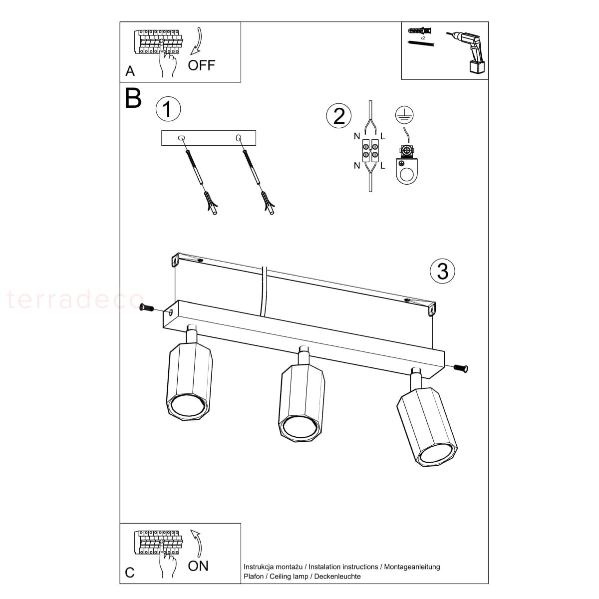 | Ilość źródeł światła | 3 |