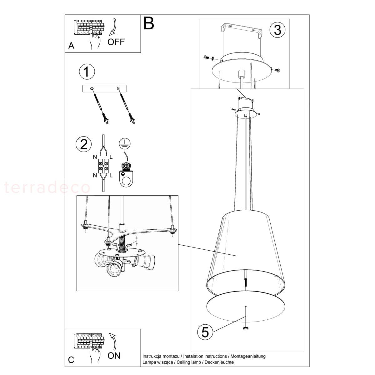 Oprawa żyrandola jest dostępna w białym lub czarnym kolorze. Dzięki temu jeszcze lepiej dobierzesz oświetlenie do salonu, kuchni czy sypialni. Biel wprowadzi nieco delikatności do wnętrza, a czerń będzie stanowiła mocniejszy akcent w aranżacji. Puść wodze fantazji i wybierz kolor, który zapewni Ci efekt, o którym marzysz!