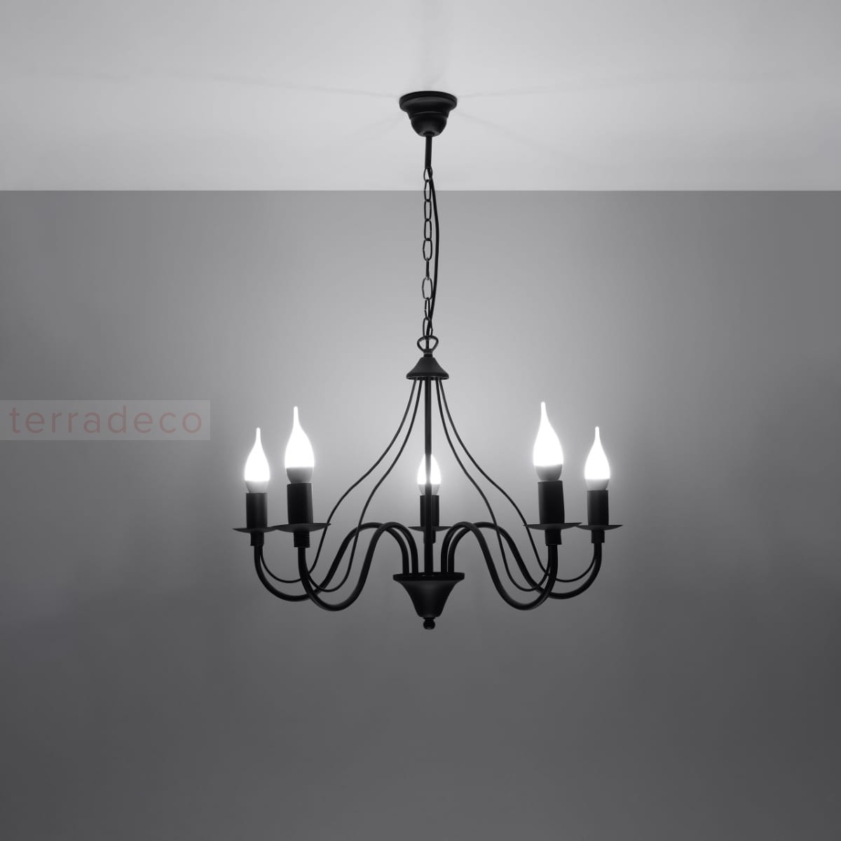 Bogate zdobienia, elegancko wygięte ramiona i żarówki na kształt płomienia świeczki tworzą niepowtarzalny klimat glamour. Dzięki bogatemu designowi ta lampa z powodzeniem może stać się główną ozdobą pomieszczenia.