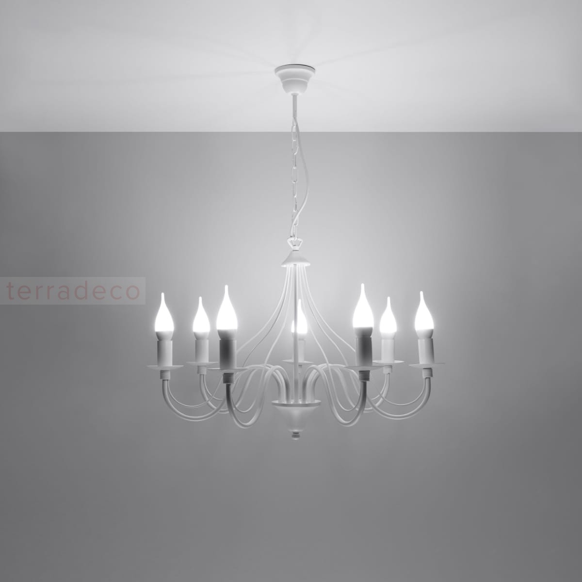 Bogate zdobienia, elegancko wygięte ramiona i żarówki na kształt płomienia świeczki tworzą niepowtarzalny klimat glamour. Dzięki bogatemu designowi ta lampa z powodzeniem może stać się główną ozdobą pomieszczenia.