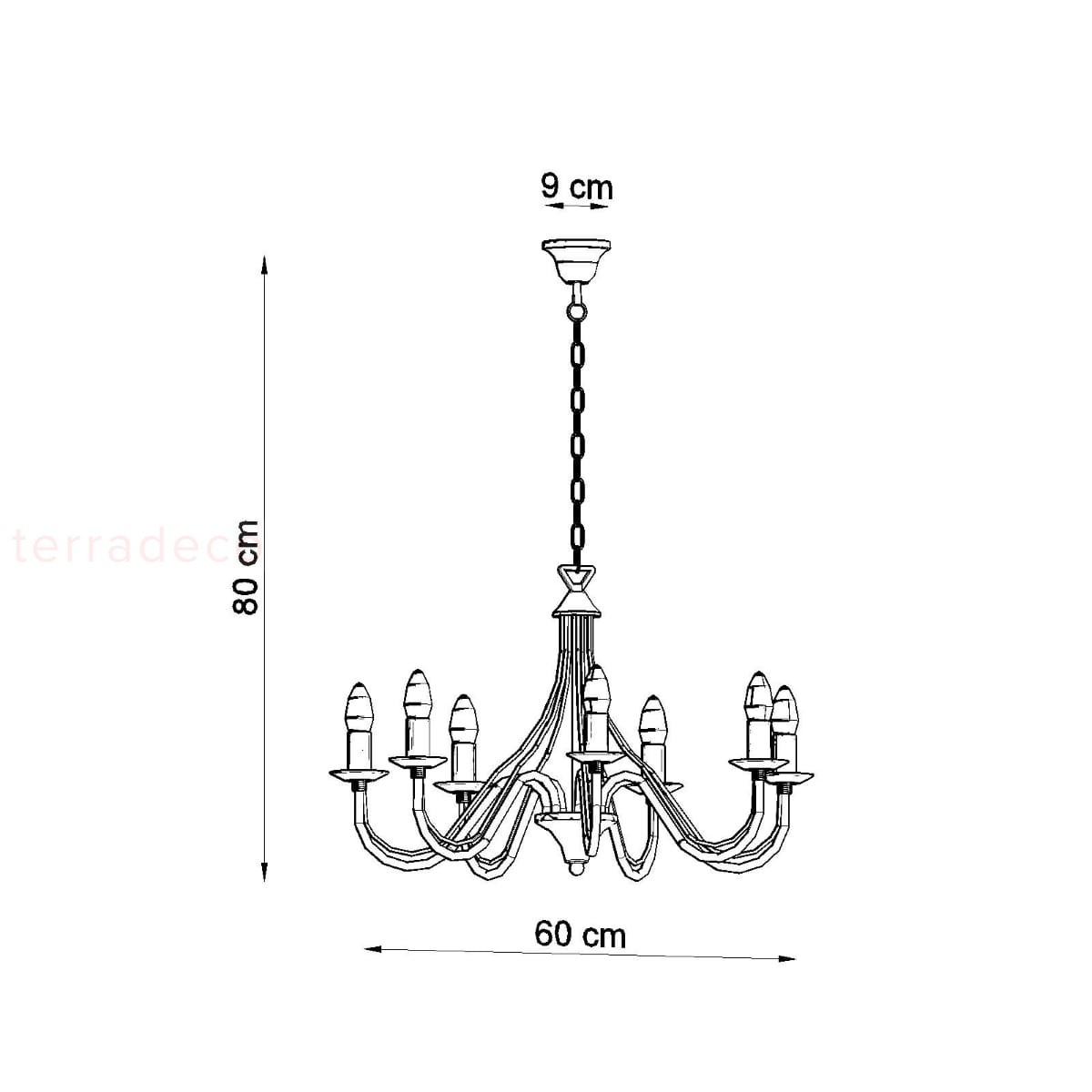 Pozornie delikatne ramiona w rzeczywistości są wykonane z niezwykle trwałej, malowanej proszkowo stali. W rezultacie lampa świecznikowa jest bardzo wytrzymała i odporna na uszkodzenia.